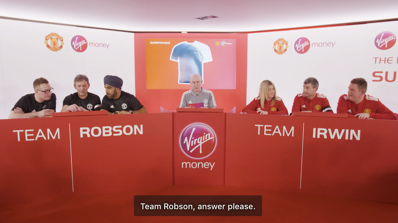 Virgin Money transformed its Manchester Lounge into a lively quiz studio, featuring two teams captained by Manchester United legends Bryan Robson and Denis Irwin. The teams, made up of super-fans, were quizzed by Alan Keegan, the voice of Old Trafford. A live audience of competition winners, chosen through engaging Twitter quizzes, added to the excitement. The event was teased on Twitter, drawing 31,000 views, and the final quiz was broadcast on MUTV and Facebook, reaching 256,000 views. This activation effectively combined live event energy with the broad reach of social media, strengthening the connection between Virgin Money and Manchester United fans.